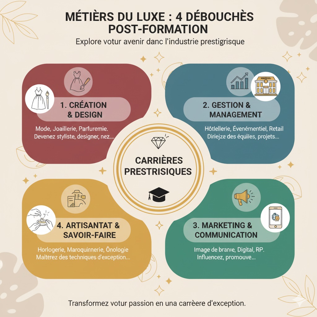 | Bac+4 à Bac+5 | Master Management du luxe, grandes écoles spécialisées | Brand manager, chef de produit, responsable export |